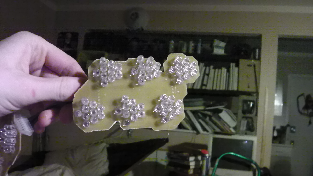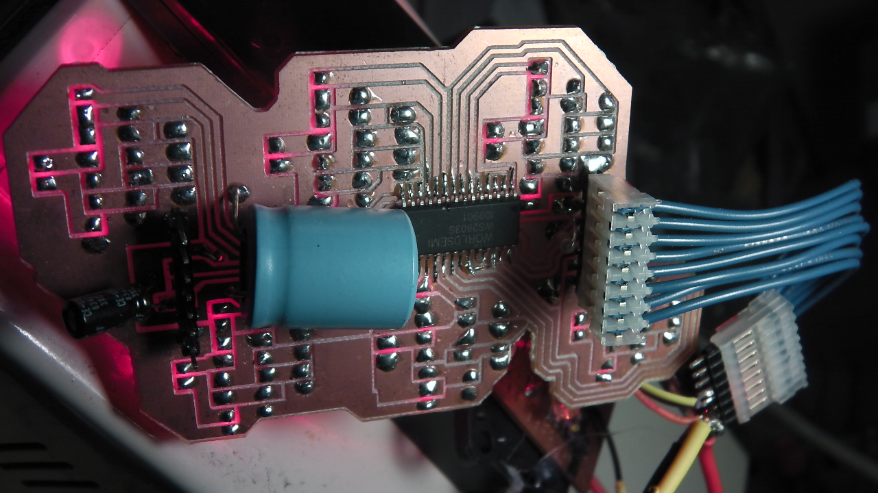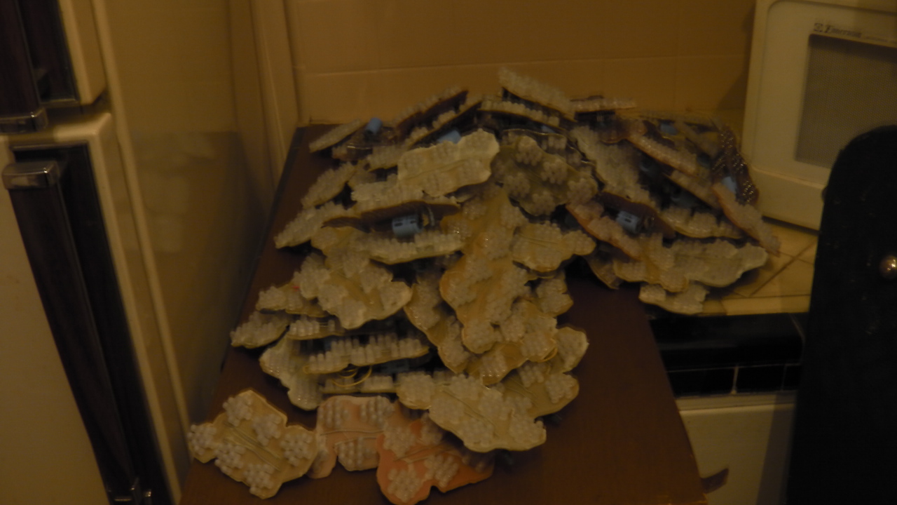 This project calls for 121 of the circuuit boards, so I’ve spend the last two weekends running the CNC machine and soldering.